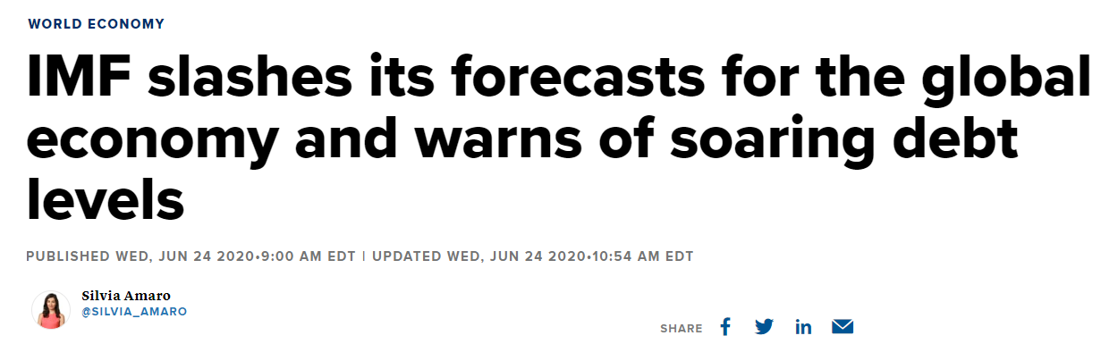 - IMF는 수요일 다시 한번 경제전망치를 하향 조정했다. 그리고 정부가 코로나 위기와 싸우기 위해 재정이 악화될 것을 경고했다.