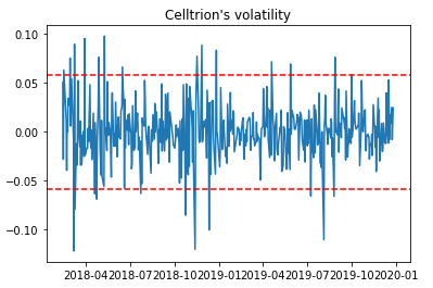변동성을 확인하기 위해서 가격 변동률이 일정 범위 내에서 움직이는 지 확인해야 한다.