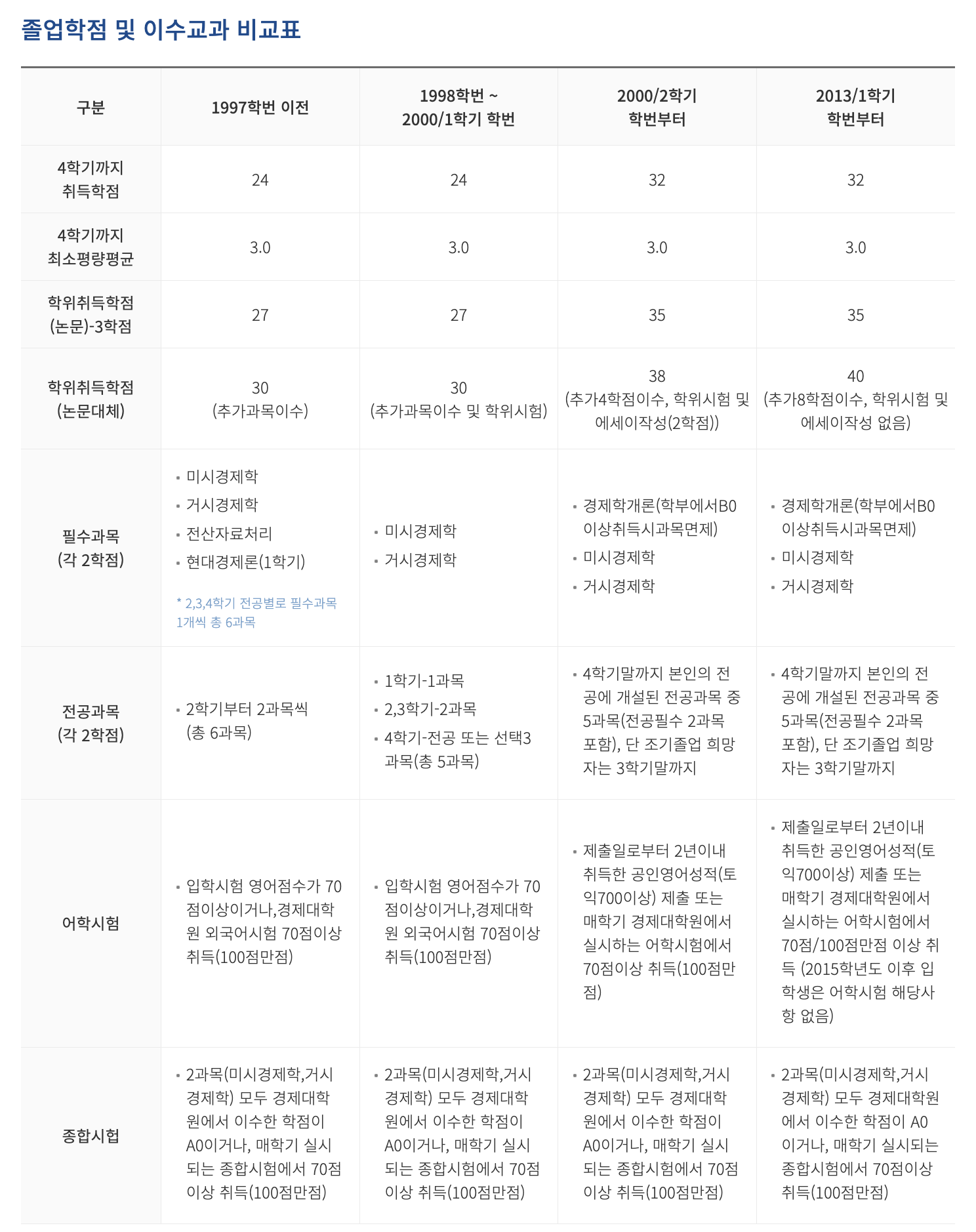 - 이수 학점: 논문 작성 시 35학점, 논문 작성하지 않을 시 40학점