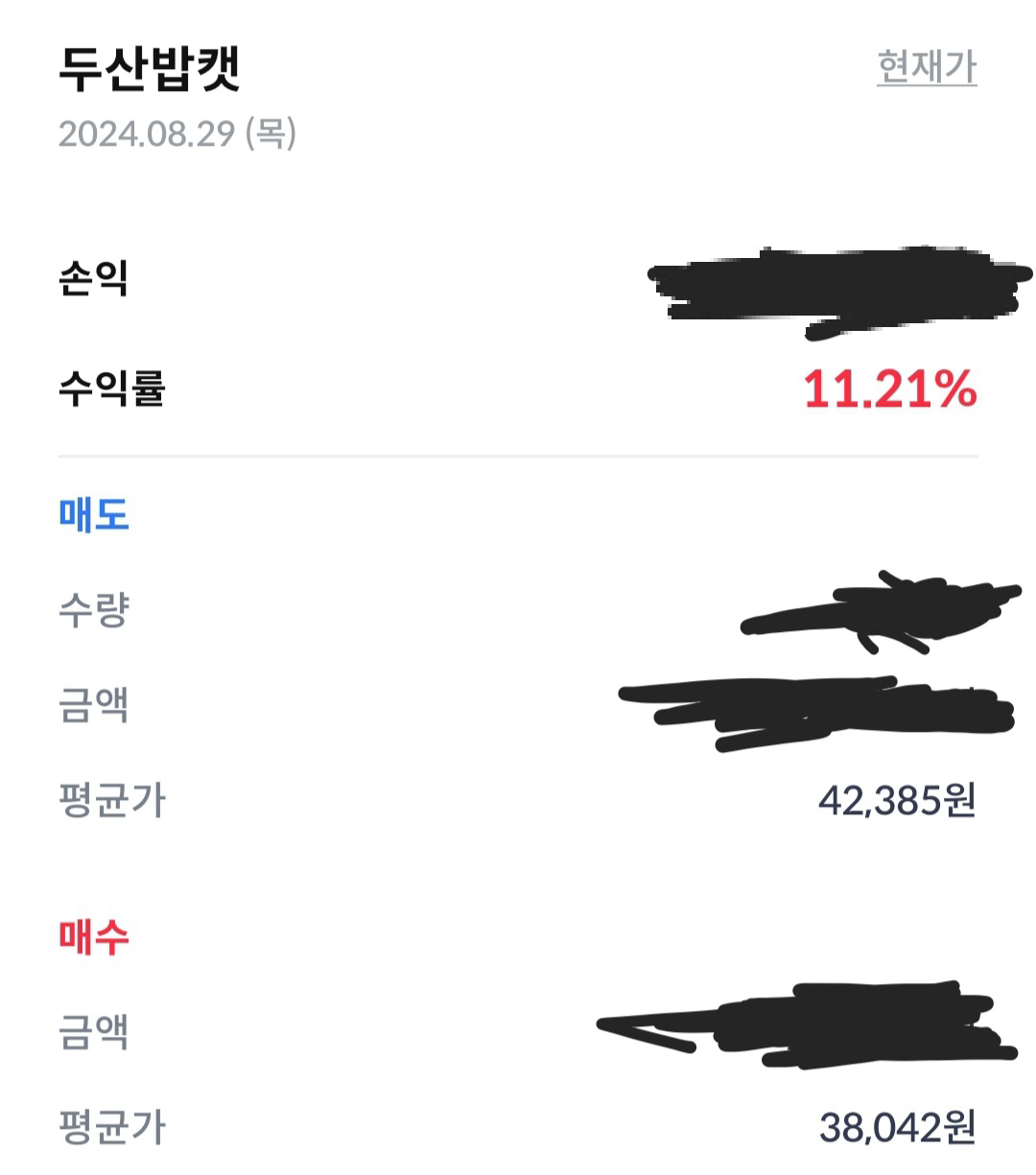 - 매도 시점 및 가격: (1차 매도) 24.8.29. 44,100원 (2차 매도) 24.8.29. 41,700원