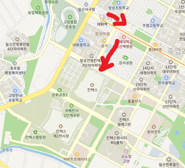 더불어 숙소에서 일어나고 나서 비몽사몽 한 상태에서 킨텍스에 가본 적이 없으시다면 길을 헤멜 가능성이 있습니다. 실제 저의 경험을 토대로 본다면, 대화역에서 킨텍스까지 걸어가는 길이 그렇게 친절하지 않기 때문에 하마터면 반대방향으로 갈 뻔했던 경험이 있기에 조심하시길 바랍니다.