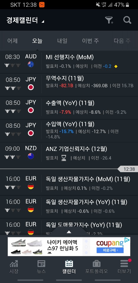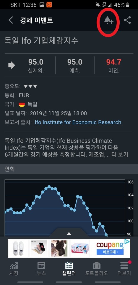 휴대용 기기에서도 연합 인포맥스 경제지표 캘린더를 이용할 수 있지만, 저 같은 경우는 무료로 알림을 받을 수 있고