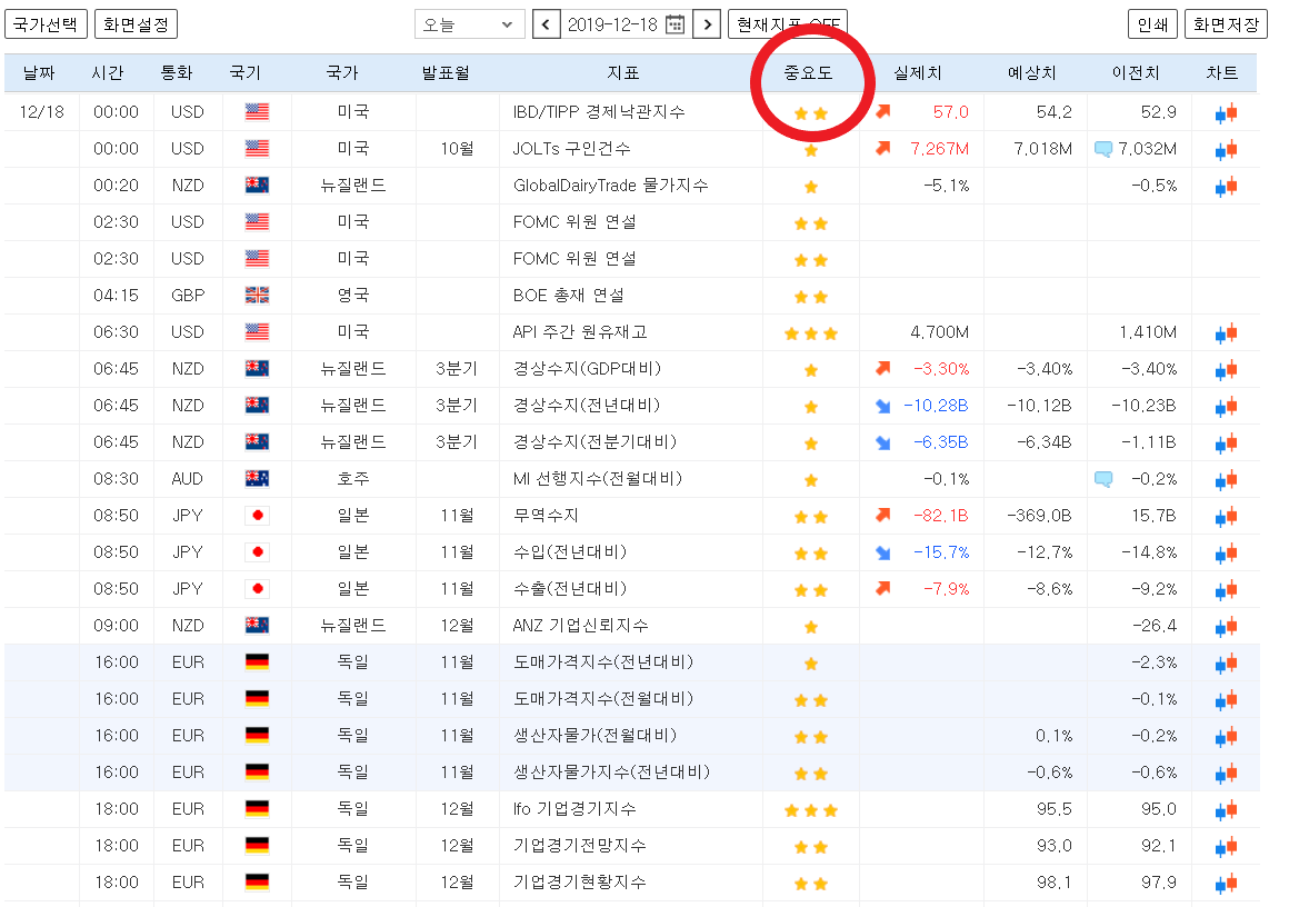 그러나 전 세계 경제지표를 한 번에 모아 두고 그리고 중요도를 정리해두는 사이트들은 존재합니다.