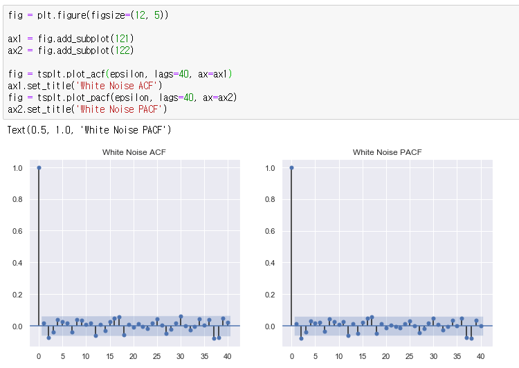 데이터의 정상성에 따라 ACF와 PACF가 다르게 그려짐을 확인할 수 있다.